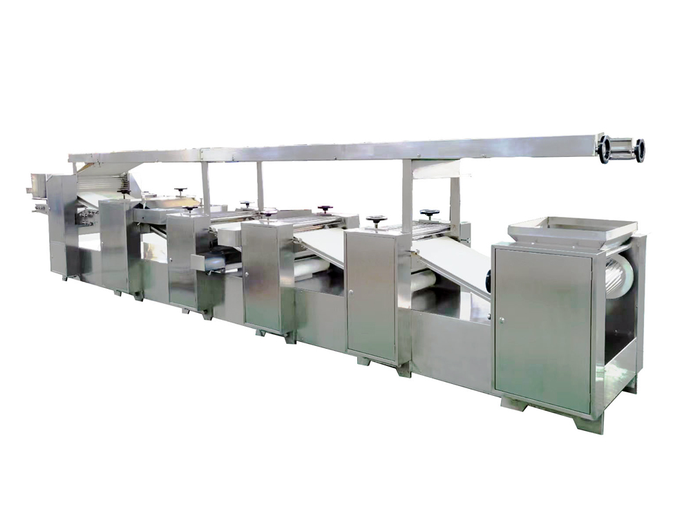 3、設(shè)備為變頻控制,每一道壓輥都采用單機(jī)驅(qū)動,通過測距傳感器,實(shí)現(xiàn)自動面帶張緊控制,多輥聯(lián)動??焖佥p松地制作大量面皮,提高生產(chǎn)效率。