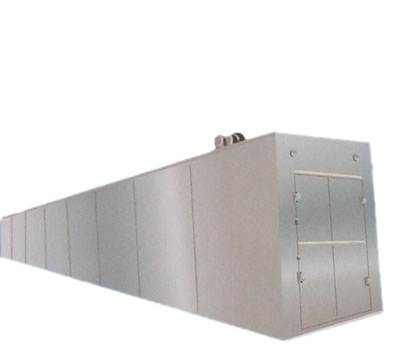 本機為隧道式多層干燥爐,爐內干燥工作面分為10層,由10臺變頻調速電機分別控制,能理想的實現(xiàn)米雪餅餅坯的干燥。